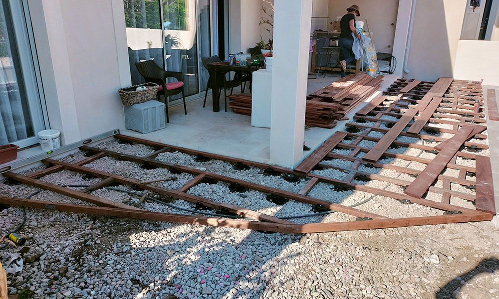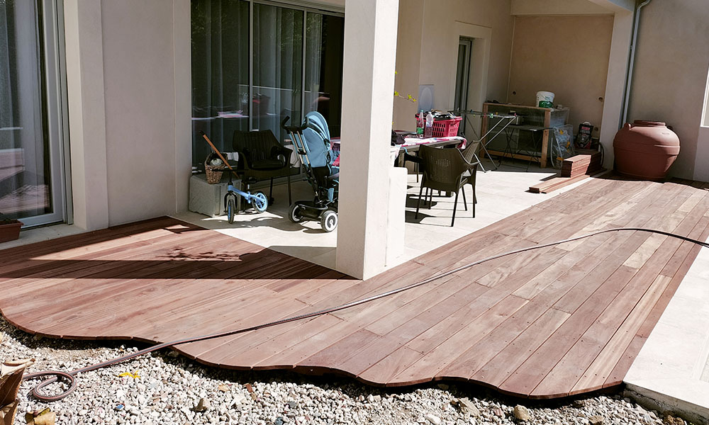 Personne professionnelle il a créé ma terrasse en bois avec l’aménagement de mon jardin.